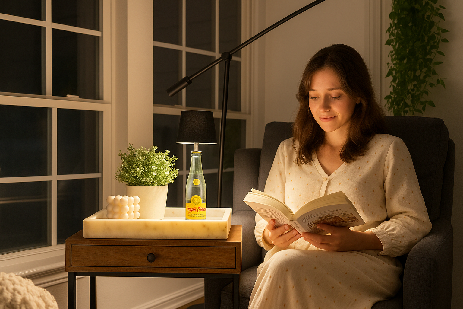 Glad you asked. The Lumaire Touch Lamp packs a 4000mAh rechargeable battery and can glow strong for over 12 hours on a full charge—depending on how bright you like things, of course.